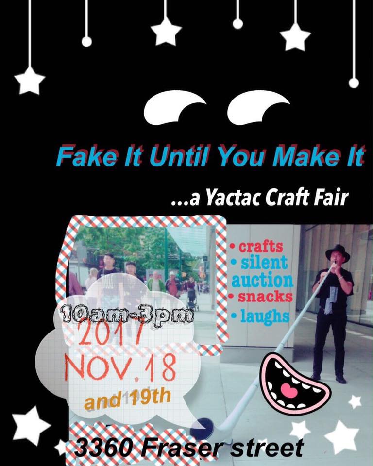Yactac is proud to partner with John Howard Society for their 6th annual craft fair this year. It will take place on Saturday Nov. 18th and Sunday Nov. 19th, 2017 from 10am-3pm at 3360 Fraser street. Please contact hello@yactac.com for more info or If you are interested in being a vendor. A silent auction will also take place with the proceeds going to support JHS.